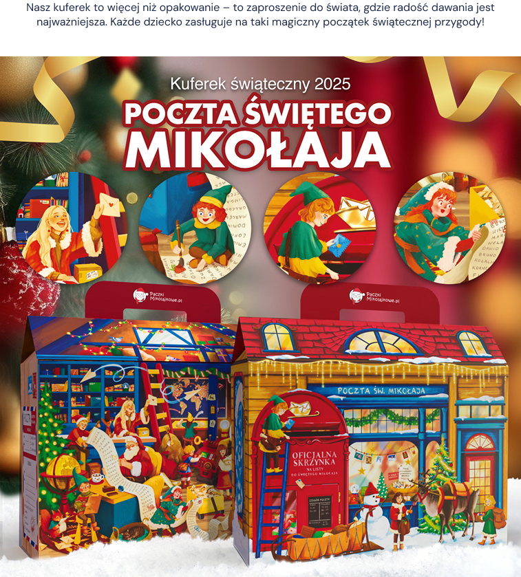 W tym roku zapraszamy Was do odkrycia najważniejszego miejsca w świątecznej krainie – Poczty Świętego Mikołaja! Nasz wyjątkowy kuferek to prawdziwa brama do magicznego świata, gdzie każdy list – marzenie dziecka jest traktowane jak najcenniejszy skarb.